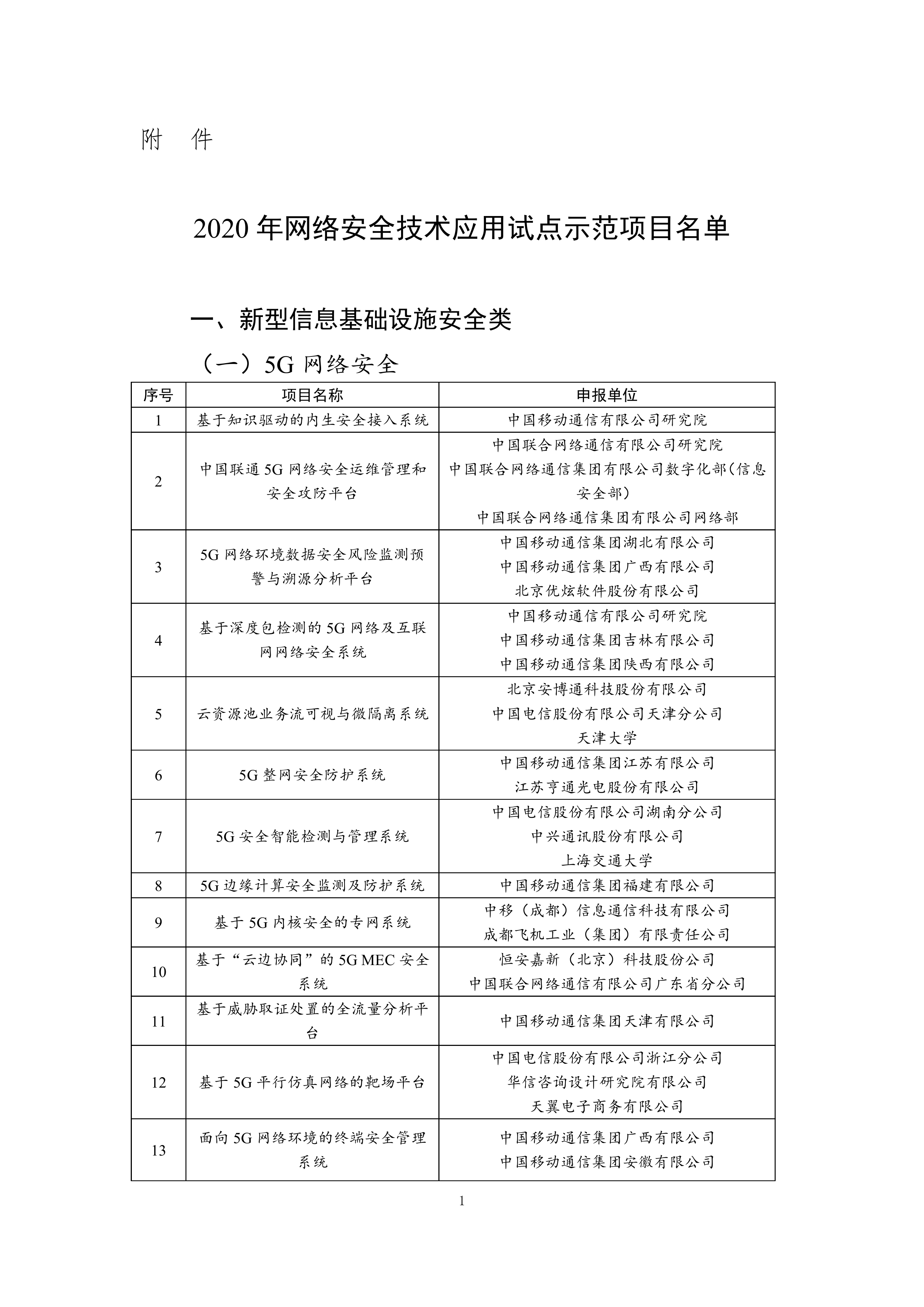 附:2020年网络安全技术应用试点示范项目名单