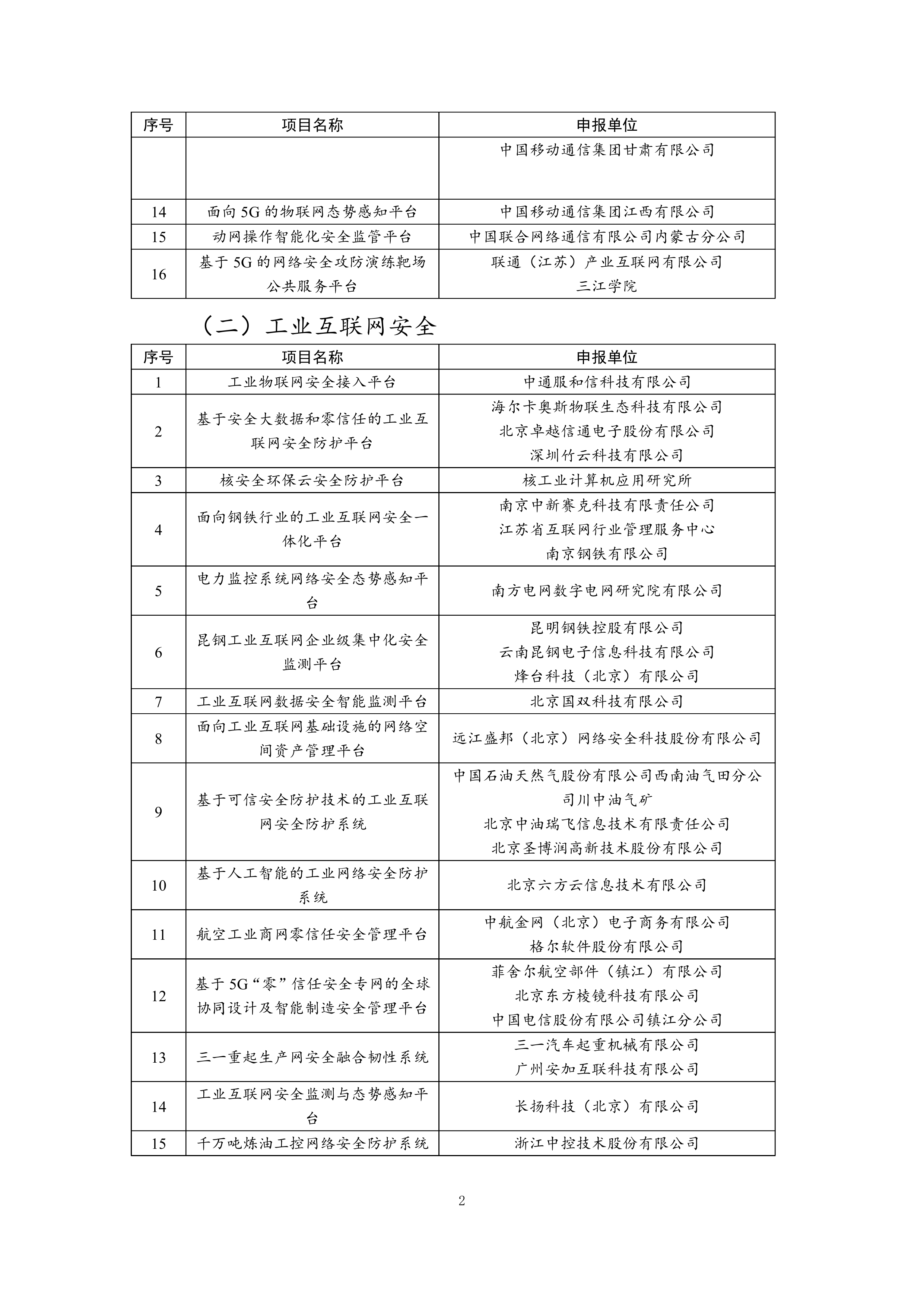 工业和信息化部办公厅关于公布2020年网络安全技术应用试点示范项目名单的通知